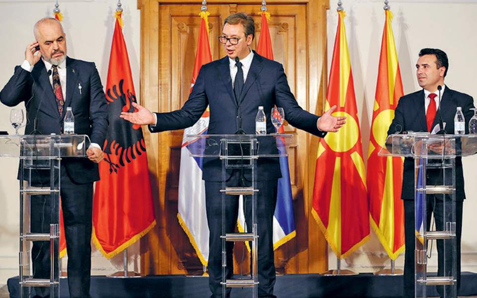 Οι πρωθυπουργοί της Αλβανίας, Έντι Ράμα, των Σκοπίων, Ζόραν Ζάεφ και ο πρόεδρος της Σερβίας, Αλεξάνταρ Βούτσιτς, υπέγραψαν χθες το βράδυ στην Αχρίδα μια κοινή δήλωση με τον κατάλογο των προτεραιοτήτων για την ενίσχυση της περιφερειακής συνεργασίας, μεταξύ των οποίων είναι η ελεύθερη διακίνηση προσώπων και αγαθών, η αναγνώριση των διπλωμάτων κλπ.